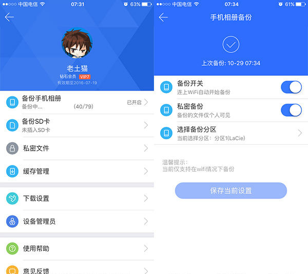 当然这款设备也有一些不足之处,比如自身不带存储空间,必须要连接U盘和移动硬盘才能正常使用。SD卡的备份功能只支持通常的图片和视频格式,而不支持RAW无损格式,比如笔者的尼康相机的NEF格式的照片就无法自动备份到下载宝中。这些功能如果能够在后续的版本中加上就再好不过了。
