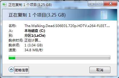 上图是从PC端通过网线向下载宝中拷贝文件时的网速(写入),可以看到传输速度为34.8MB/秒,速度也非常快