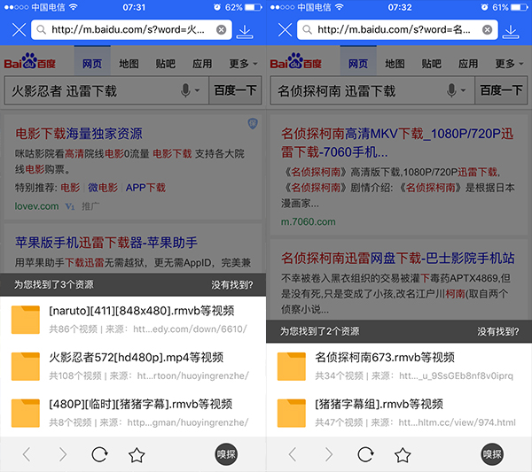 下载宝APP的搜索功能会自动列出当前热门的网络资源,点击搜索之后就可以嗅探到相应的下载连接,然后直接下载即可。下载宝APP会自动识别网页的迅雷、磁力、edk等下载链接,不需要用户去手动点击链接下载。